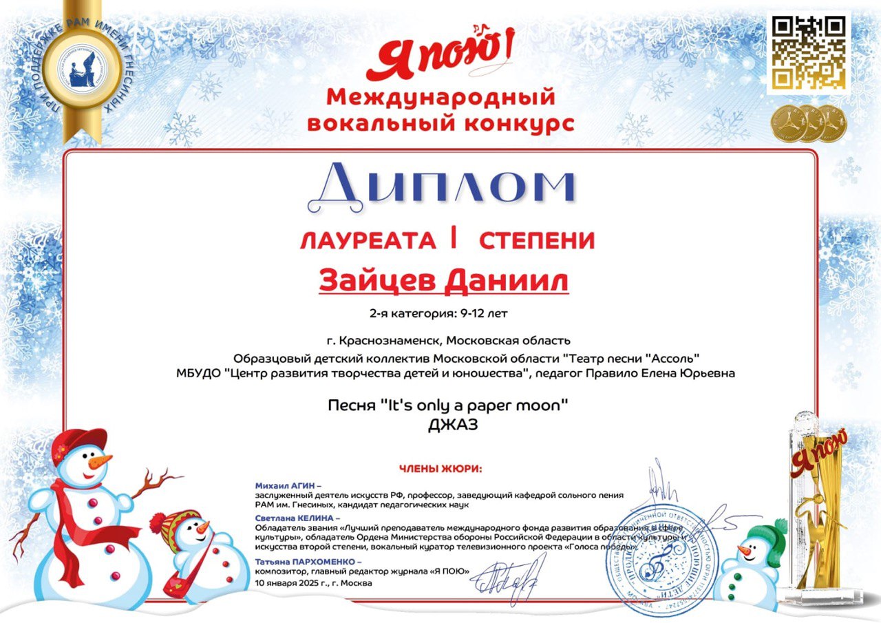 26 Призовых мест - результаты участия Образцового детского коллектива МО «Театр песни «Ассоль» в 5 онлайн-конкурсах в период зимних каникулВ период зимних каникул обучающиеся и педагоги Образцового детского коллектива МО «Театр песни «Ассоль» (руководитель, педагог по вокалу - Правило Е.Ю., постановщик и хореограф - Правило О.Е.) в общей сложности приняли участие в 5 онлайн-конкурсах Всероссийского и Международного уровня. Коллектив принес большое количество побед в копилку МБУДО ЦРТДЮ: 26 призовых мест, 3 результата из которых - ГРАН-при и 5 - Лауреата 1 степени!!!