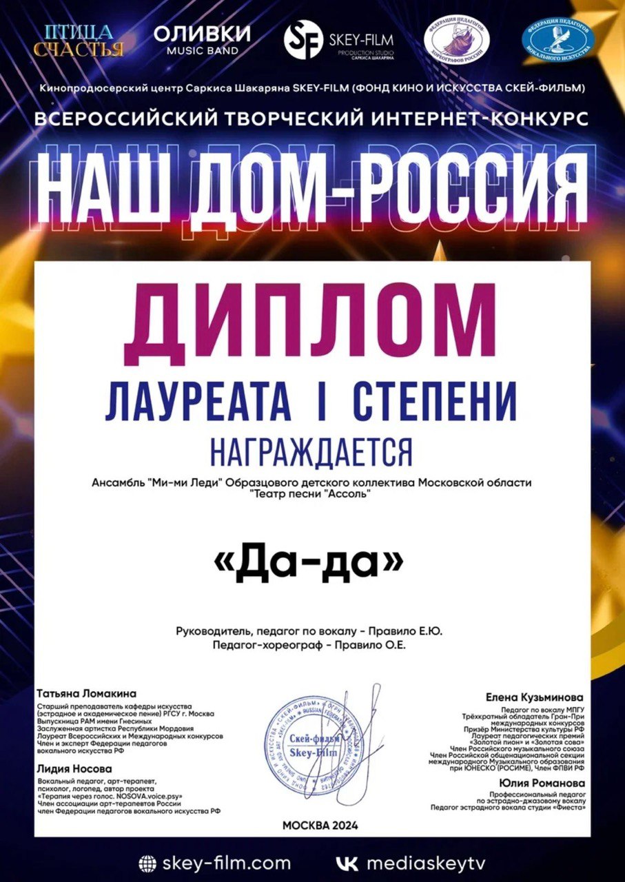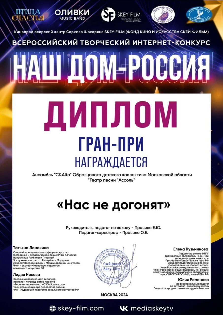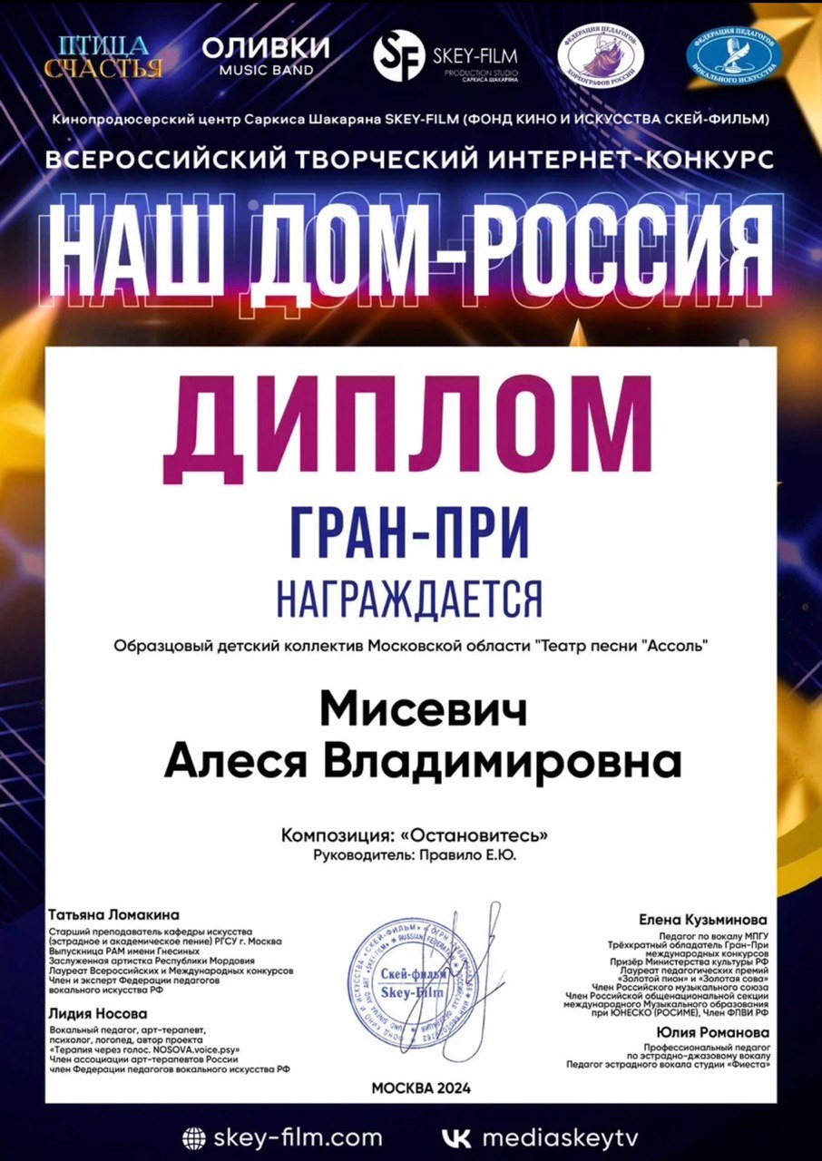 2. Всероссийский творческий интернет-конкурс «Наш дом - Россия»: ГРАН-при: Мисевич Алеся (авторская песня), Ансамбль «C&Alto»;