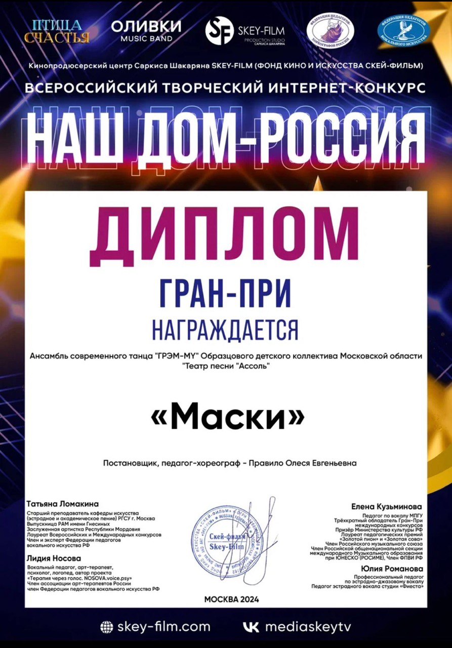 А так же обучающиеся участвовали в составе Ансамбля современного танца «ГРЭМ-МY» (постановщик и хореограф - Правило Олеся Евгеньевна) и принес коллективу еще ГРАН-при и Лауреата 1 степени.