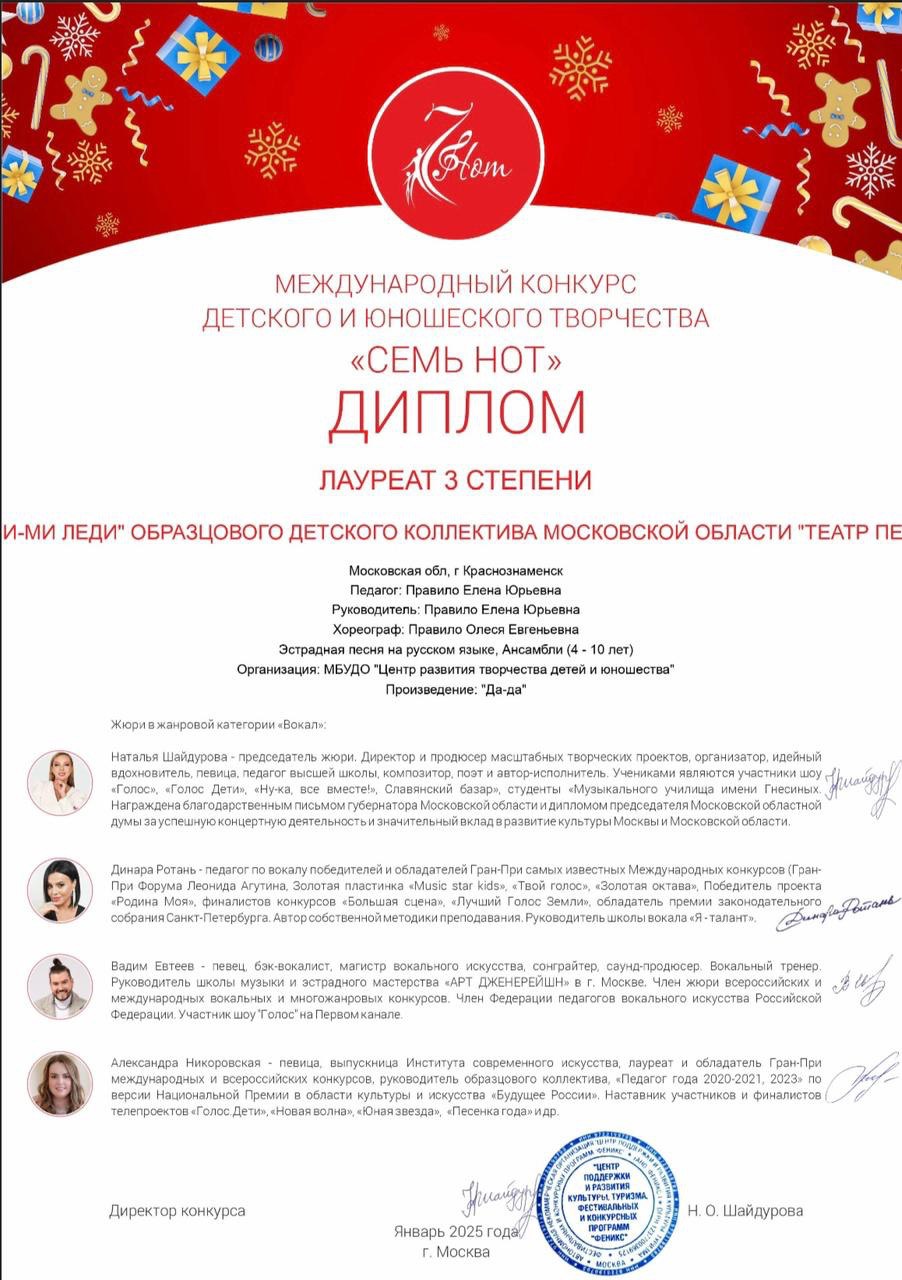 3. Международный конкурс детского и юношеского творчества «Семь нот»: