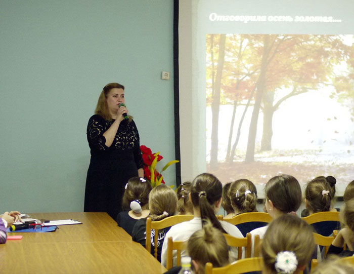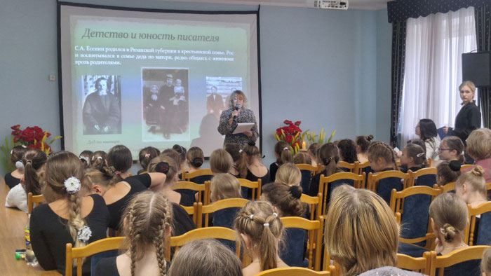 Юные зрители узнали интересные факты из биографии поэта, услышали выразительное чтение стихотворений Есенина в исполнении обучающихся театральной студии «Сказка» и ее руководителя Степановой Т.А., услышали романс «Отговорила роща золотая» в исполнении Аверьяновой В.В.