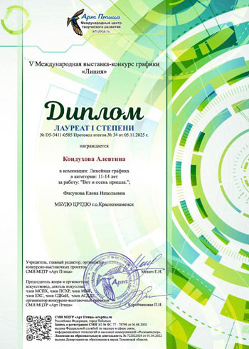Международный конкурс "Линия"Обучающиеся группы "Радуга" (педагог Фисунова Е. Н.), приняли участие в Международном конкурсе "Линия". Поздравляем ребят с хорошими результатами!