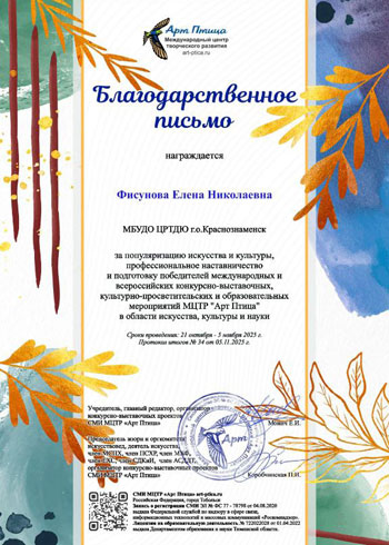 Обучающиеся творческого объединения «Изобразительная деятельность» МБУДО ЦРТДЮ под руководством педагога Ольги Анатольевны Шараповой продемонстрировали блестящие результаты, приняв участие в крупных всероссийских и международных конкурсах