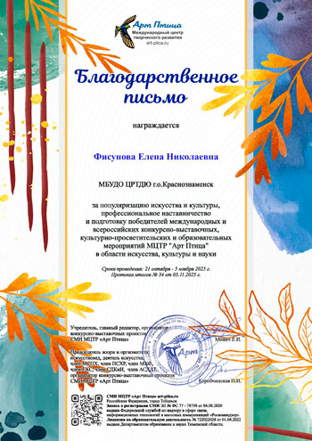 Обучающиеся творческого объединения «Изобразительная деятельность» МБУДО ЦРТДЮ под руководством педагога Ольги Анатольевны Шараповой продемонстрировали блестящие результаты, приняв участие в крупных всероссийских и международных конкурсах