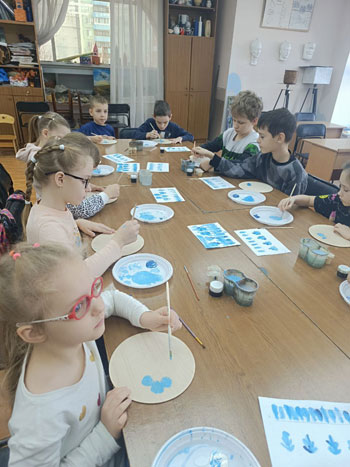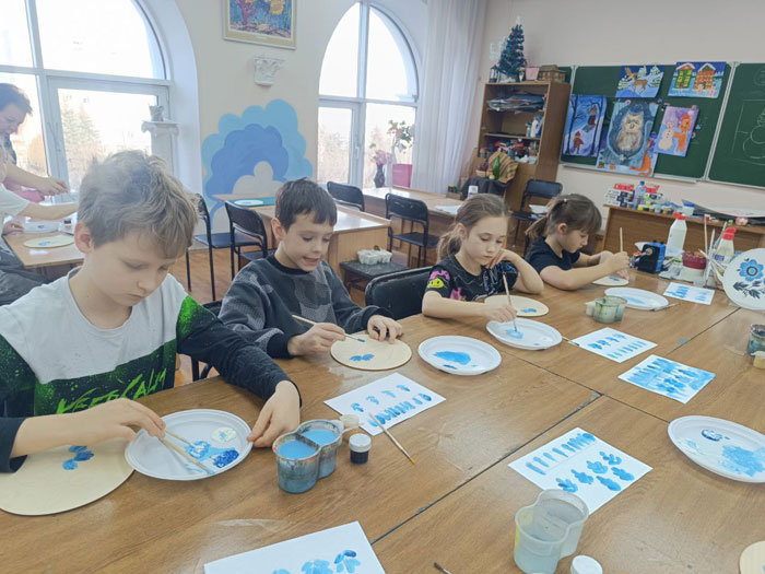 "Волшебство народных промыслов "- так называются мастер-классы в рамках школьных каникулСегодня прошёл мастер-класс по декоративной росписи подставок (дощечек) для детей младшего школьного возраста. Один мазок в два цвета не трудный, но очень увлекательный процесс. Требует внимания и усидчивости юного художника, в результате - красивый подарок маме или бабушке! Педагог Шарапова О. А.
