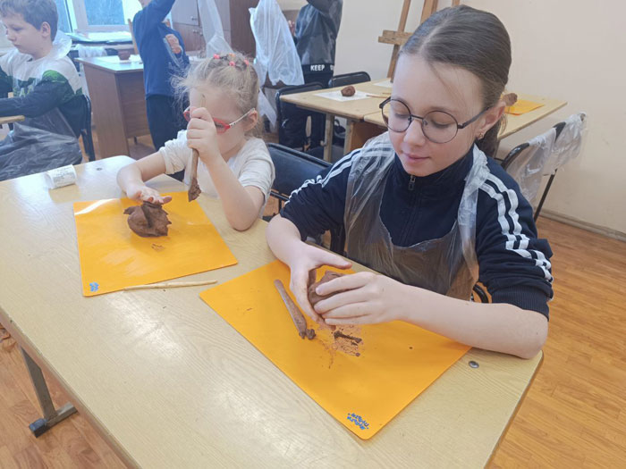 Продолжаются мастер-классы в рамках школьных каникулСегодня ребята посетили мастер-класс по лепке, педагог Корягина К. А. Пластика – одна из наиболее эмоциональных сфер деятельности ребенка. Работа с глиной расширяет круг возможностей детей, развивает пространственное воображение, конструкторские способности. Дети познакомились с одной из самых древних техник лепки - лепка из цельного куска глины. Посмотрите какие замечательные работы получились!