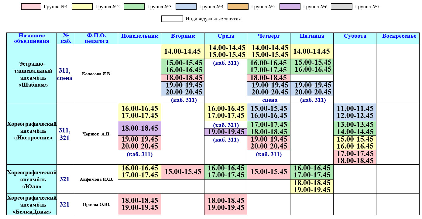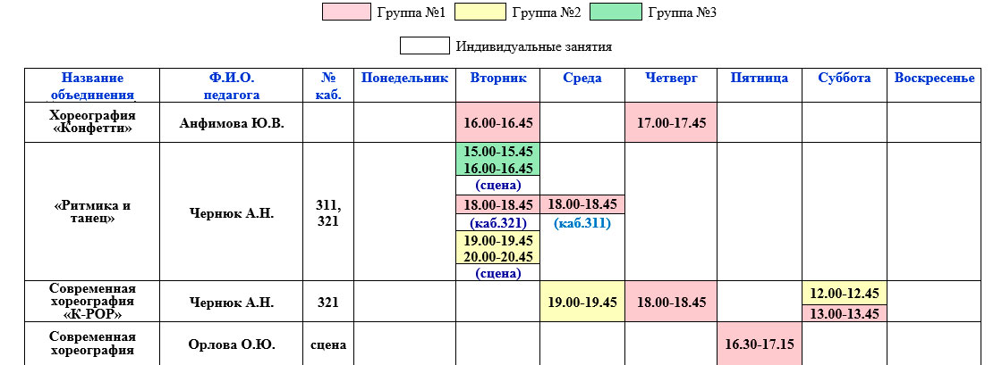 ХореографияРасписание бюджетных занятий на I полугодие 2025-2026 учебного года