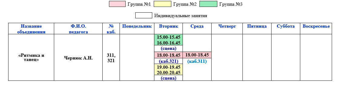 «Ритмика и танец»Расписание занятий на I полугодие 2025-2026 учебного года
