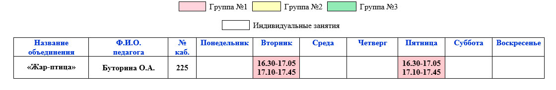 «Жар-птица»Расписание занятий на I полугодие 2025-2026 учебного года