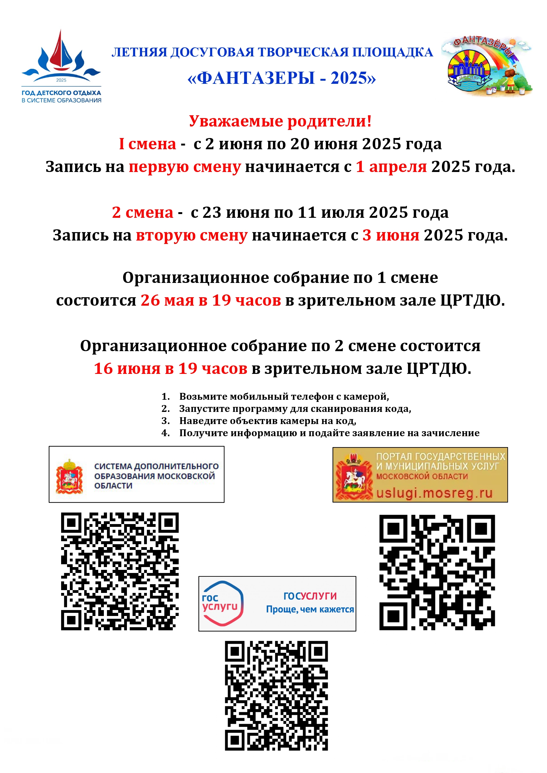 Фантазеры 2025Уважаемые родители! С 3 июня в МБУДО «Центр развития творчества детей и юношества» открывается набор на II смену летней досуговой творческой площадки «Фантазеры»