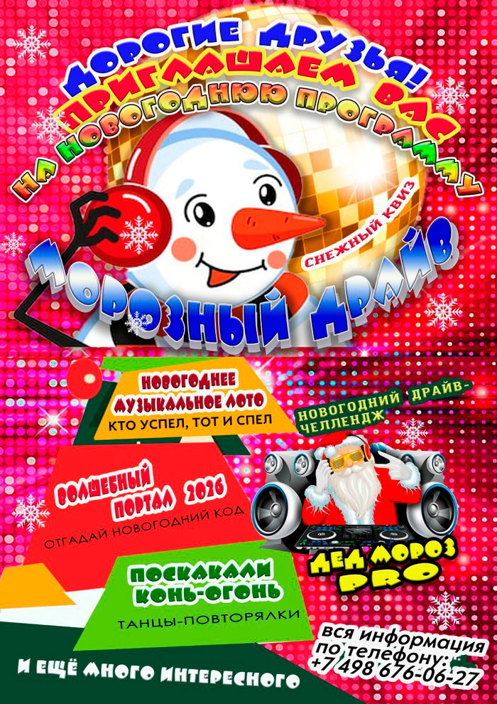 Новогодняя программа "Морозный драйв"🎄Совсем скоро наступит самый волшебный праздник- Новый год! Мы предлагаем зажигательные программы для детей разного возраста