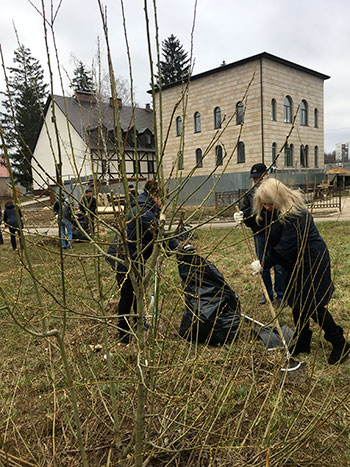 Второй общеобластной субботник22 апреля коллектив ЦРТДЮ начал с построения всех сотрудников и определении задач по проведению субботника. Было принято решение разбиться на 3 бригады.Мужская часть коллектива Центра изъявила желание помочь в уборке территории городского парка, вооружившись пилой и топором. Женщины хозотдела взяли наждачную бумагу и краску для обработки и покраски лавочек и контейнеров для мусора. Они подготовили у ЦРТДЮ грядку для посадки цветов в день проведения акции «Лес Победы». Основная часть коллектива дружно убрала территорию, в соответствии с планом проведения субботника, определённую администрацией города. Итог субботника, проведённый сотрудниками ЦРТДЮ: оказана помощь в уборке территории городского парка, собрано 44 мешка мусора, проведена обрезка всех деревьев и кустарников на территории ЦРТДЮ, обработаны и покрашены две лавочки и два контейнера для мусора, побелили 32 дерева, находящихся на территории Центра развития творчества детей и юношества. После сделанной работы все желающие угостились бутербродами и горячим чаем, с любовью приготовленными сотрудниками МУП «СУН». Спасибо всем, кто сегодня был с нами!