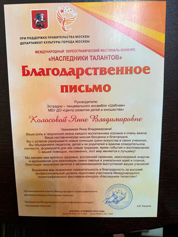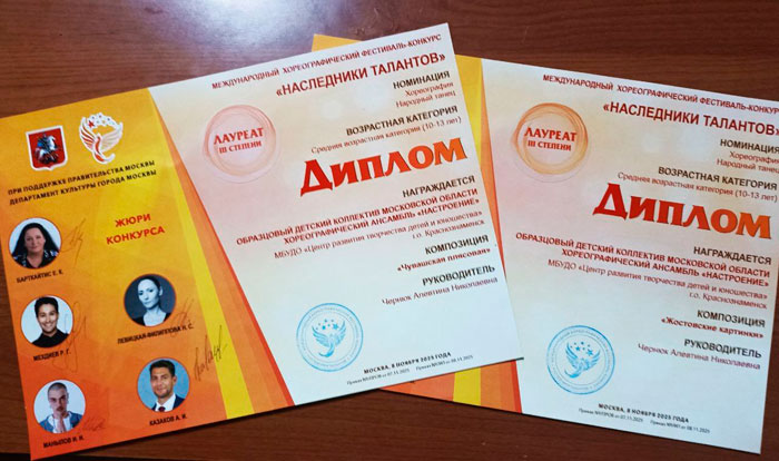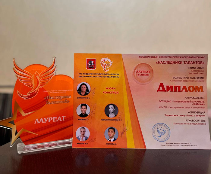 Образцовый детский коллектив Московской области — хореографический ансамбль «Настроение» и Эстрадно-танцевальный ансамбль «Шабнам» — приняли участие в Международном хореографическом фестивале-конкурсе «Наследники талантов»!