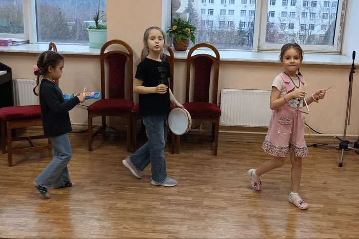 На занятиях в «Вокально-эстрадной студии» ведётся подготовка к конкурсу и Новому годуДети не только поют, но и учатся играть на музыкальных инструментах, отрабатывают чёткость движений и учатся работать в ансамбле, подстраиваясь под общее звучание. Педагог Агапова Анна Михайловна