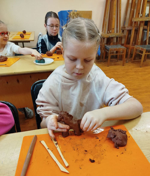Продолжаются мастер-классы в рамках школьных каникулСегодня ребята посетили мастер-класс по лепке, педагог Корягина К. А. Пластика – одна из наиболее эмоциональных сфер деятельности ребенка. Работа с глиной расширяет круг возможностей детей, развивает пространственное воображение, конструкторские способности. Дети познакомились с одной из самых древних техник лепки - лепка из цельного куска глины. Посмотрите какие замечательные работы получились!