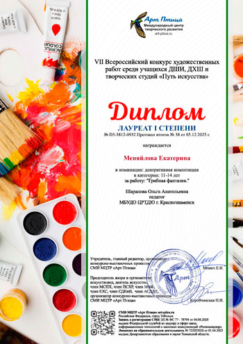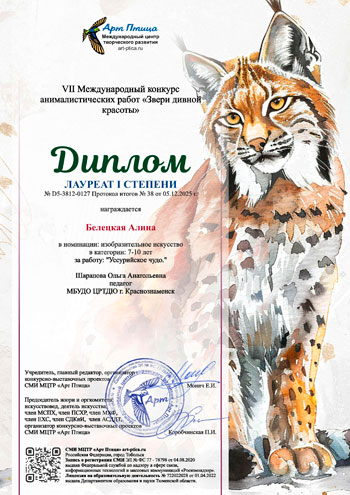 Обучающиеся творческого объединения «Изобразительная деятельность» МБУДО ЦРТДЮ под руководством педагога Ольги Анатольевны Шараповой продемонстрировали блестящие результаты, приняв участие в крупных всероссийских и международных конкурсахС 21 ноября по 5 декабря 2025 года проходили два значимых конкурсных мероприятия: VII Международный конкурс анималистических работ «Звери дивной красоты» и VII Всероссийский конкурс художественных работ «Путь искусства»