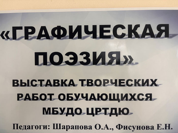 Выставка «Графическая поэзия»Приглашаем посетить выставку творческих работ обучающихся МБУДО «Центр развития творчества детей и юношества» «Графическая поэзия» (педагоги Шарапова Ольга Анатольевна, Фисунова Елена Николаевна). Многие представленные работы завоевали призовые места в III Международном художественном конкурсе чёрно-белой композиции и графики «Три тона». Выставка развернута в фойе 1 этажа