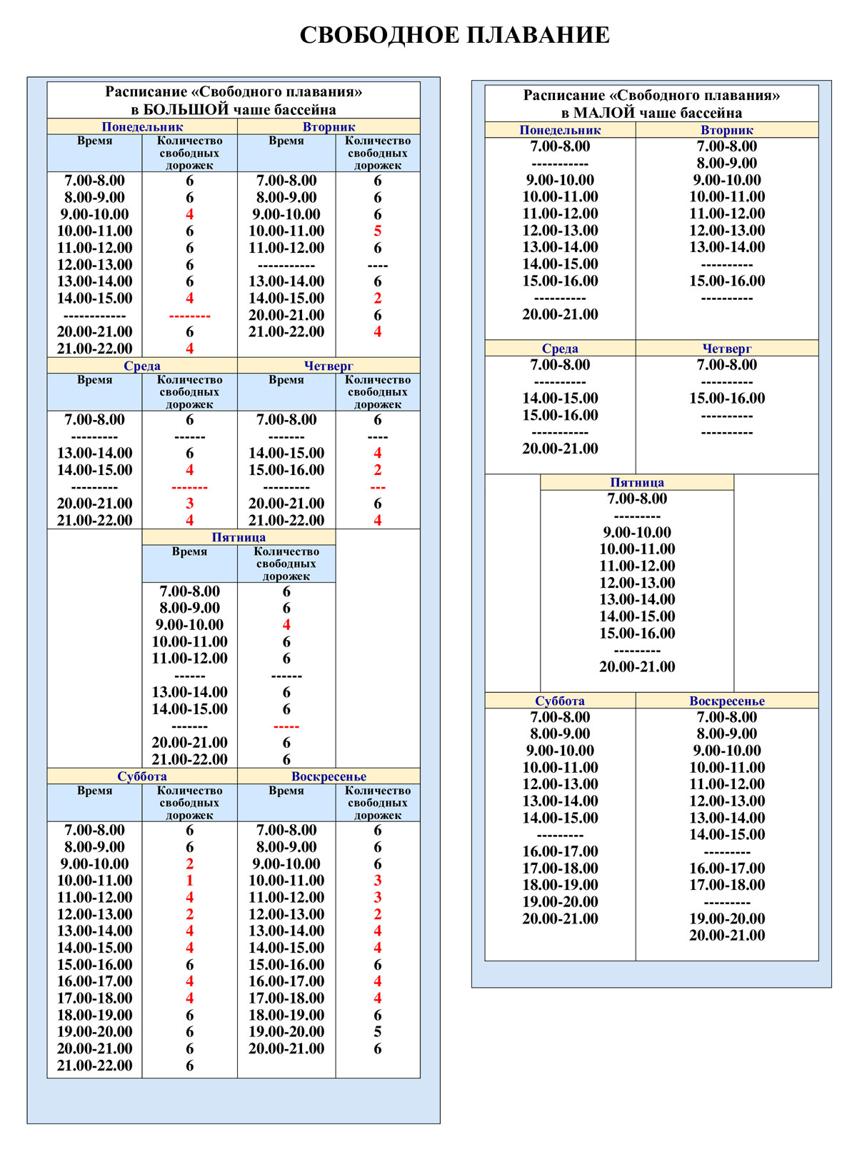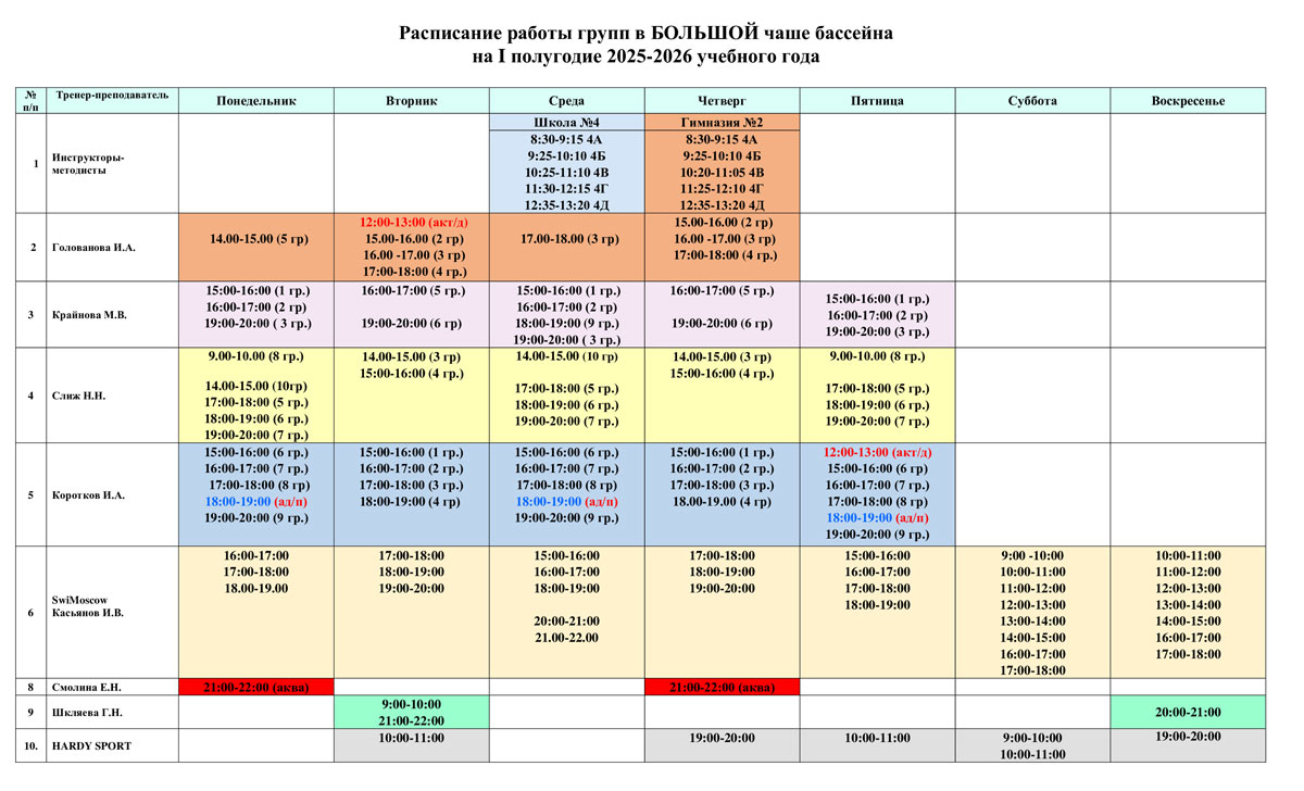 Расписание работы бассейна на первое полугодие 2025-2026 учебного года